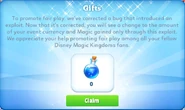 In order to create a fair playing experience for all DMK players, we have identified the players who have used this bug more than 5 times, and will be removing a portion of the excess Arendelle Shields and Magic that they received from this bug specifically. This means that any currencies collected through regular play will not be affected for any users. We appreciate your understanding during this time, as we want to ensure that everyone has a fair chance to earn the Winter Wonders Event characters and attractions.