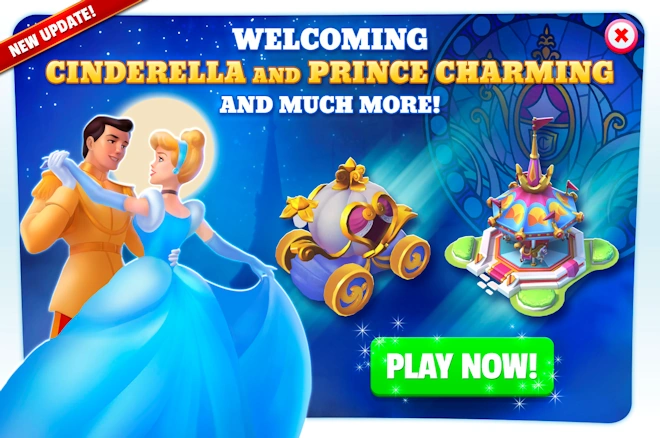 Cinderella, Enchanted Chests Update[]On 29th July 2016, the fifth (5th) update and the third (3rd) major update (1.3.0) was released for the game. A NEW PRINCESS HAS BEEN SPOTTED IN THE KINGDOM! 7+ New Quests!